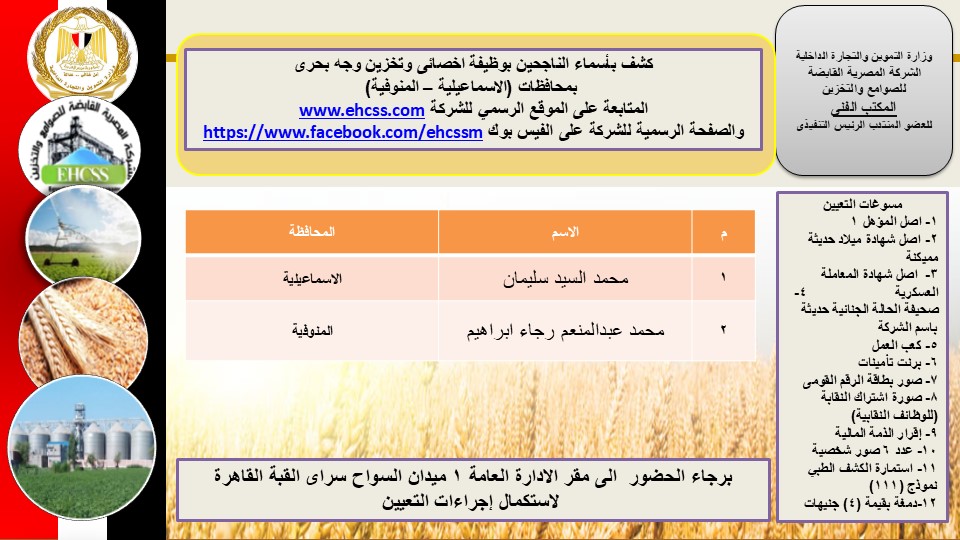 اسماء الناجحين بوظيفة فنى استلام وتخزين وصرف محافظات