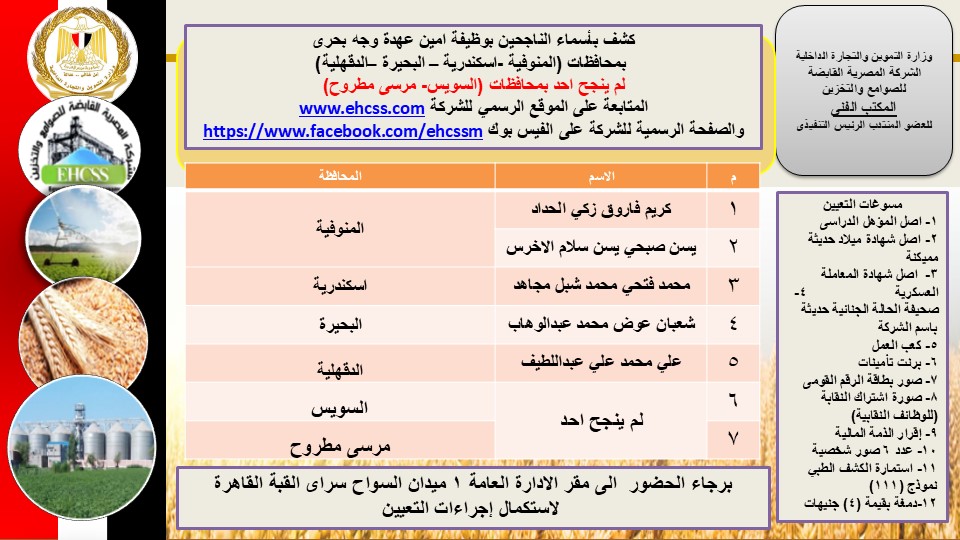 اسماء الناجحين بوظيفة امين عهدة محافظات
