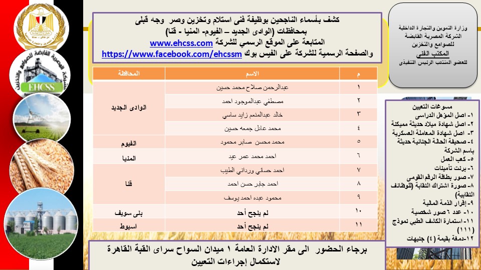 فنى استلام وتخزين وصرف وجه قبلى